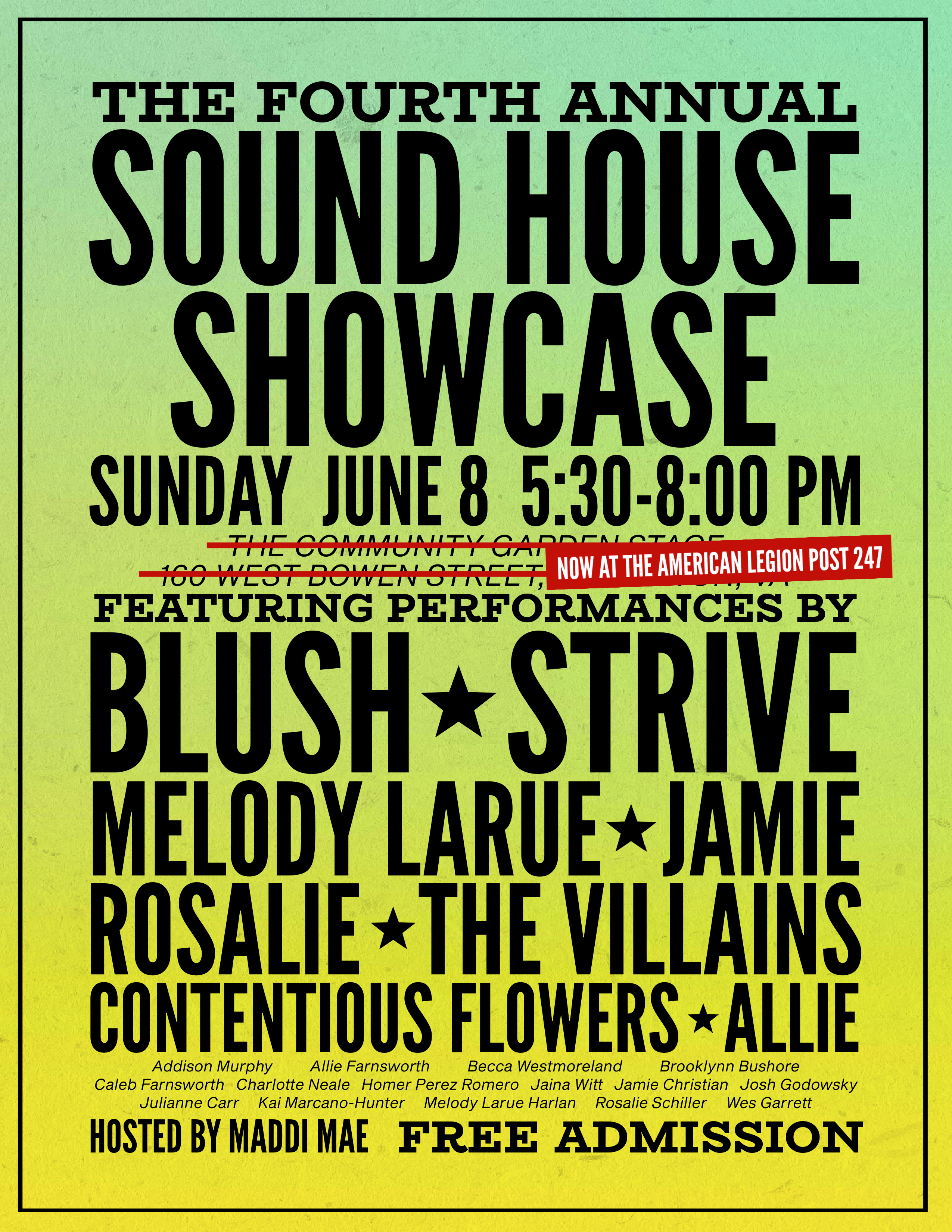Our version of a studio recital, the Sound House Showcase is a mini music festival featuring student artists and bands from the Sound House Community. Enjoy performances from all levels of musicians at American Legion Post 247, right down the street from our studio. Chairs will be provided now that we’ve shifted indoors, but you can bring your own snacks; sit back and relax or jump up and dance. This is our fourth Showcase. You can check out photos from previous years’ Showcases here: 2022, 2023, and 2024.