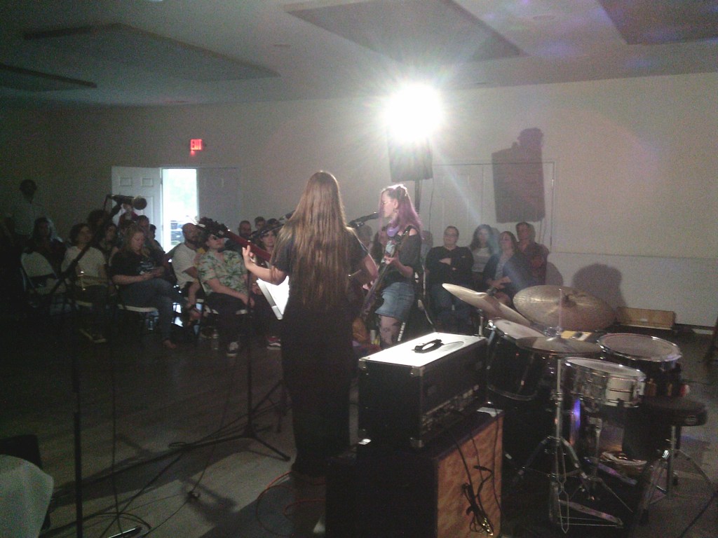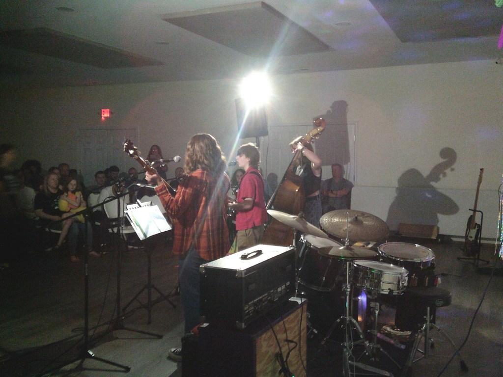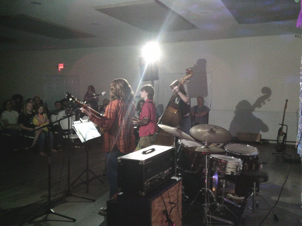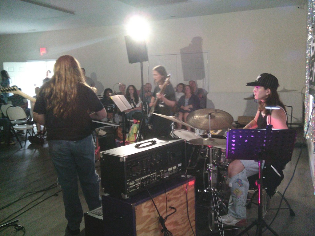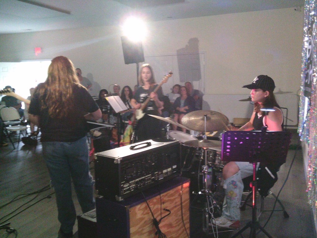 Growth Note: Allie started taking lessons in February of this year. Due to some setbacks with her instrument, Allie literally just got started really digging in on the bass, and she’s up here tonight playing a song solo and joining her brother’s band for a couple of songs.