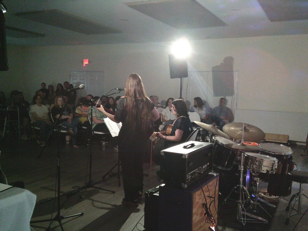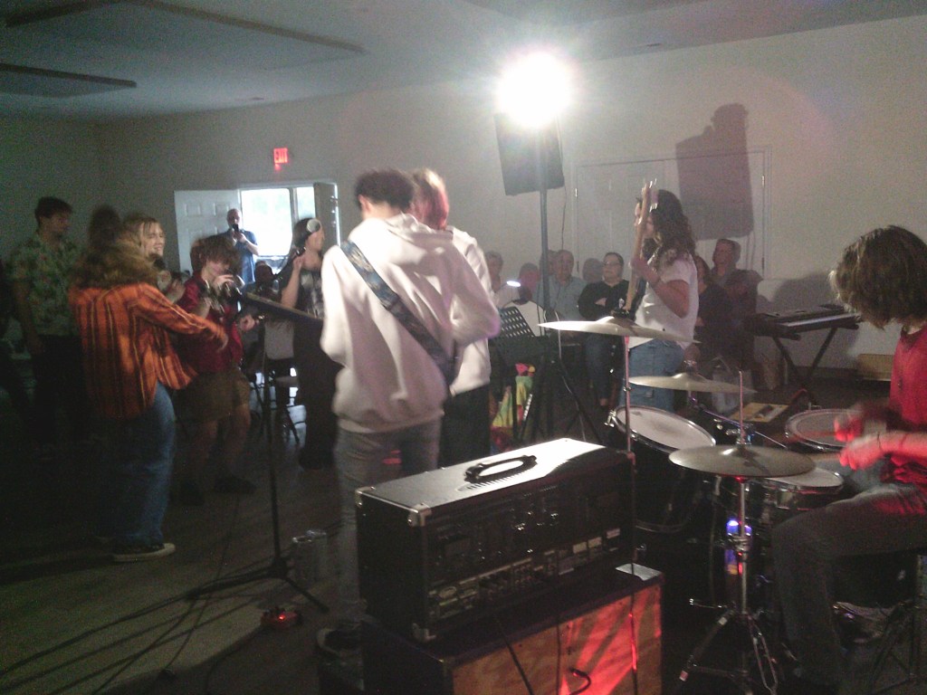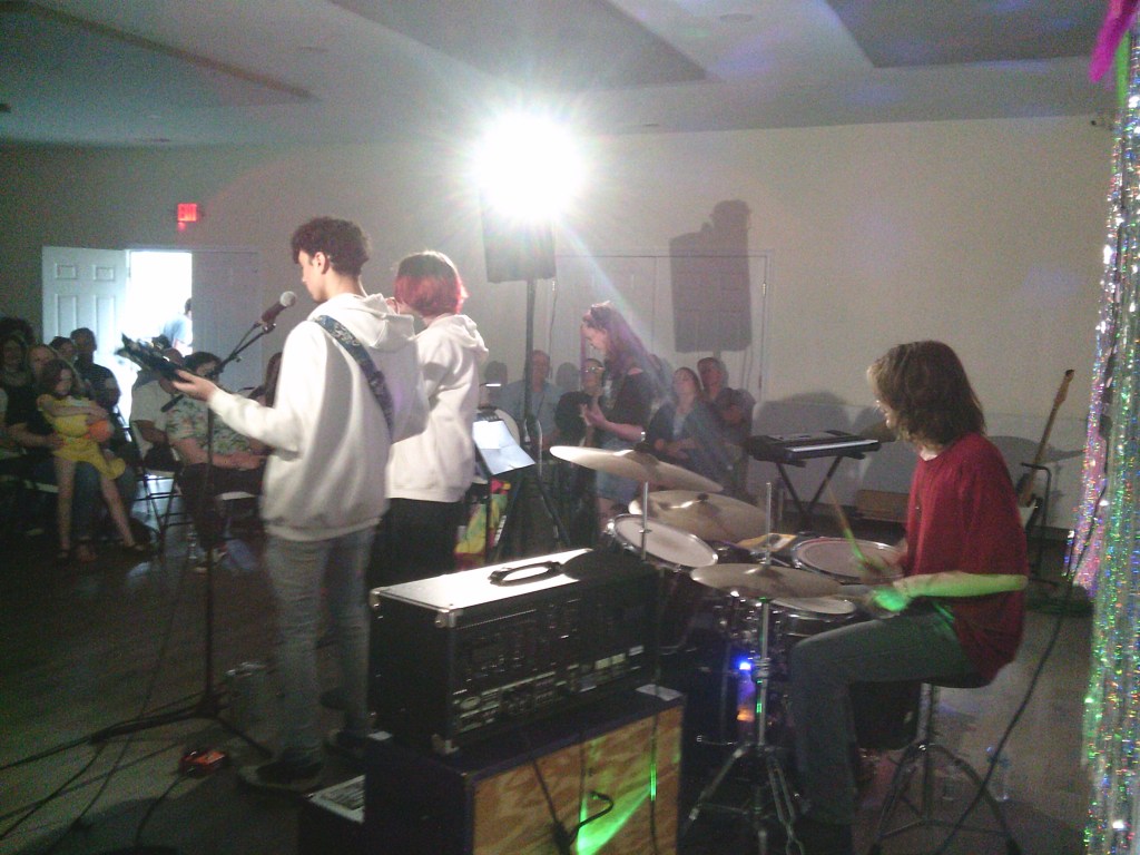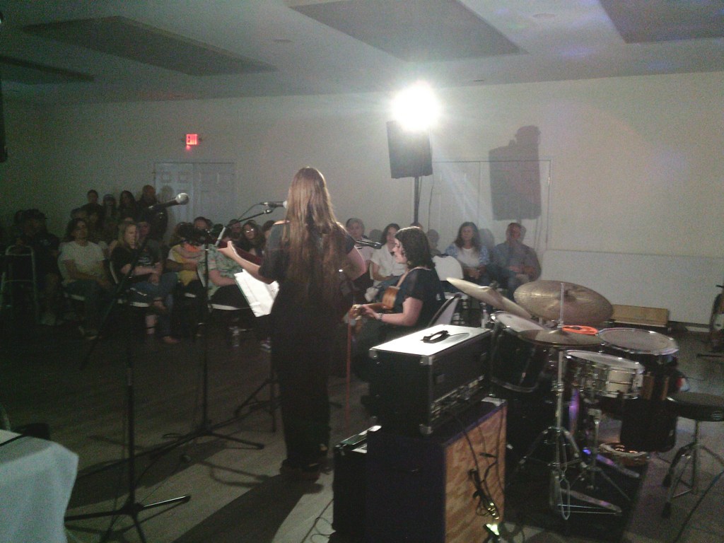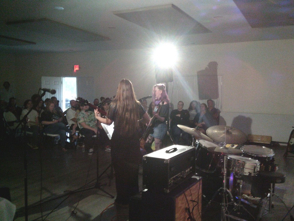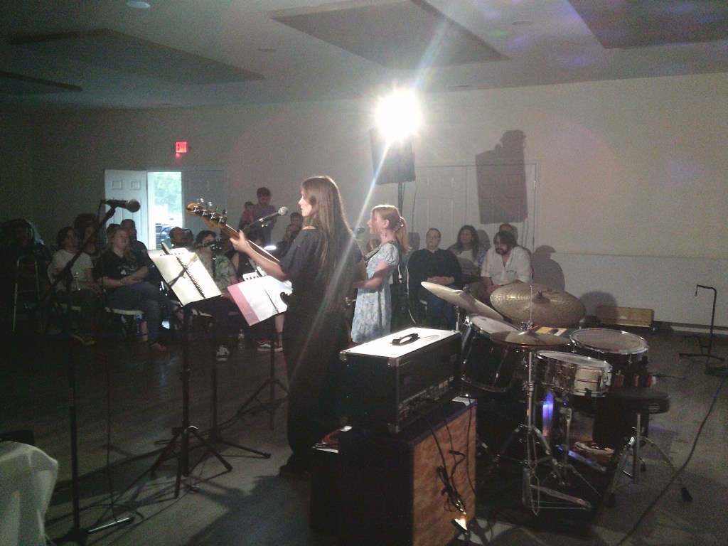Growth Note: Allie started taking lessons in February of this year. Due to some setbacks with her instrument, Allie literally just got started really digging in on the bass, and she’s up here tonight playing a song solo and joining her brother’s band for a couple of songs.